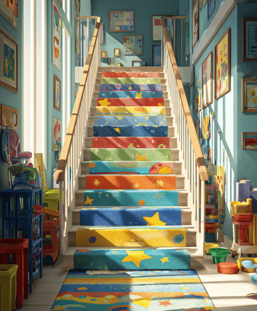 If you’ve got little ones, a whimsical runner with fun prints can turn stairs into a playful feature.