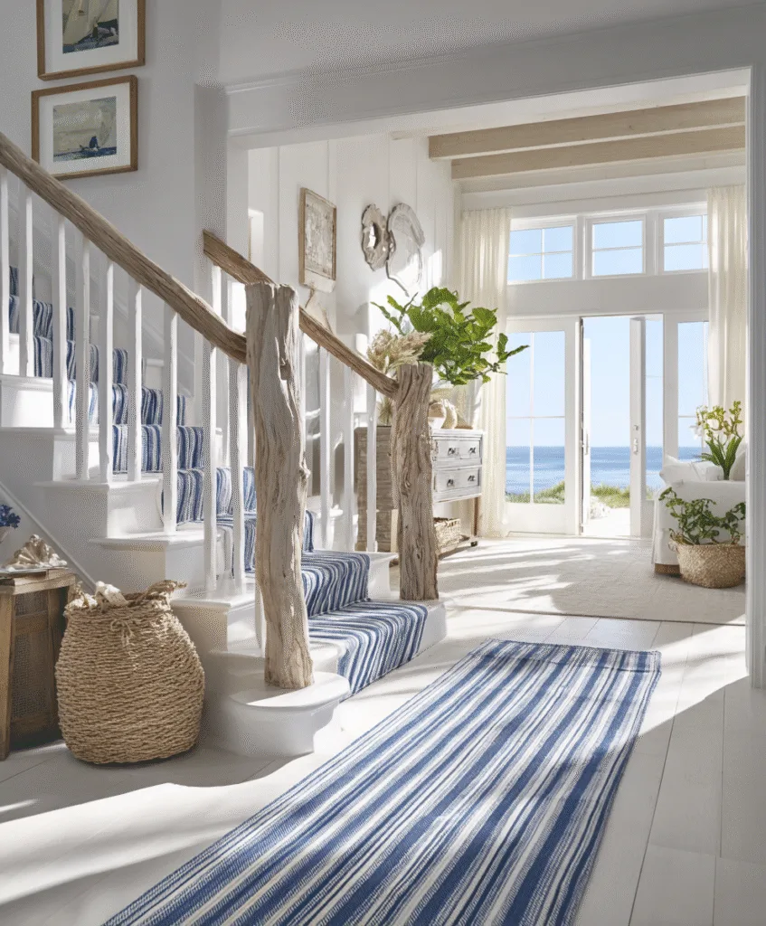 If you’re dreaming of beach house vibes, look no further than a blue and white striped runner. It’s crisp, nautical, and eternally fresh.