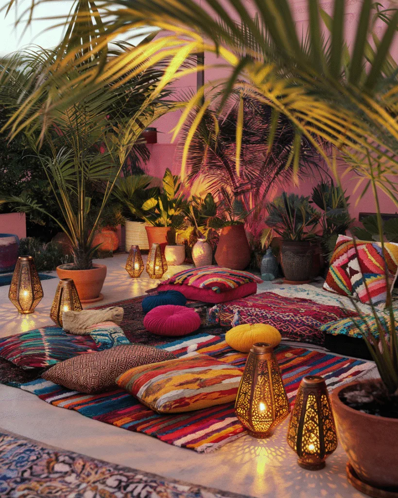 Think warm terracotta pots, desert succulents, and a low seating area with throw pillows. I created one of these during a vacation and I swear it was the coziest tea hour ever.