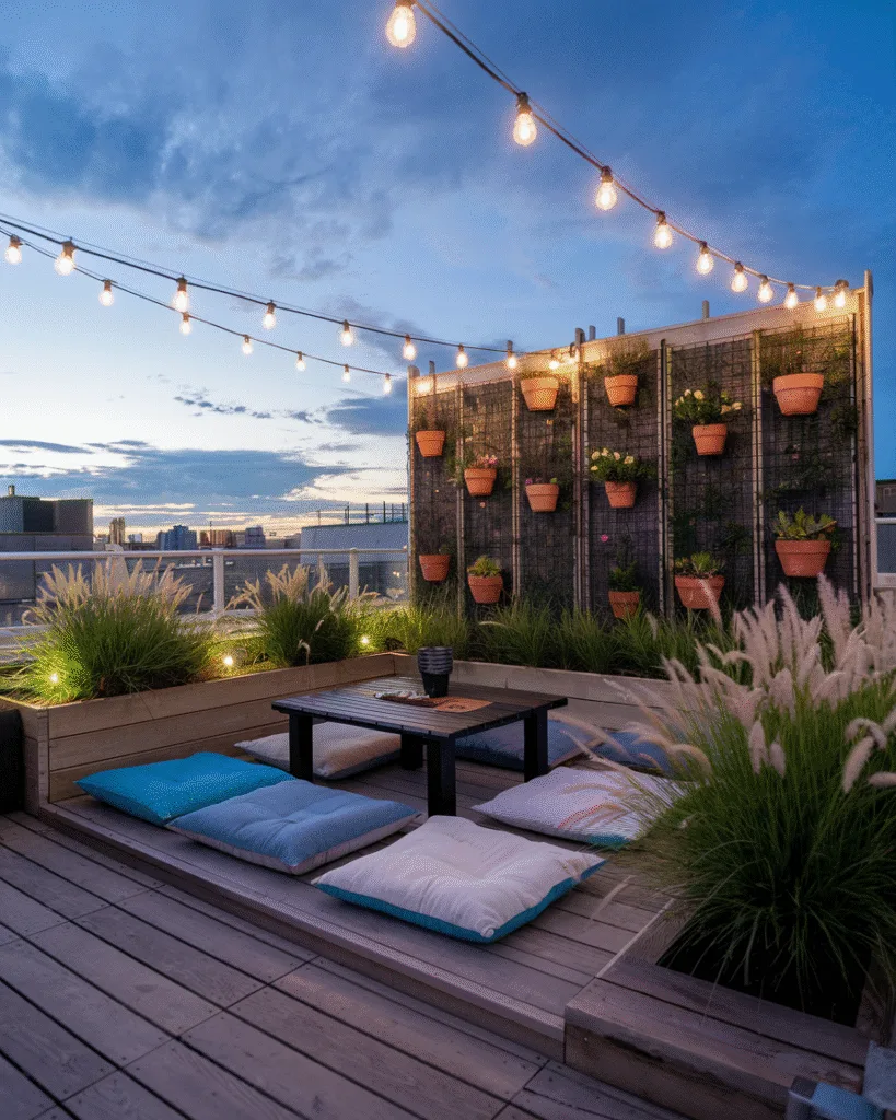 I once turned my tiny rooftop into a slice of heaven with just a few potted herbs, a foldable bistro table, and fairy lights.