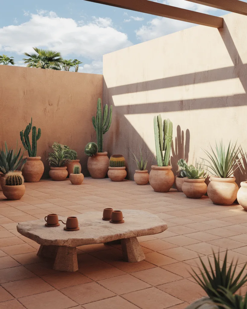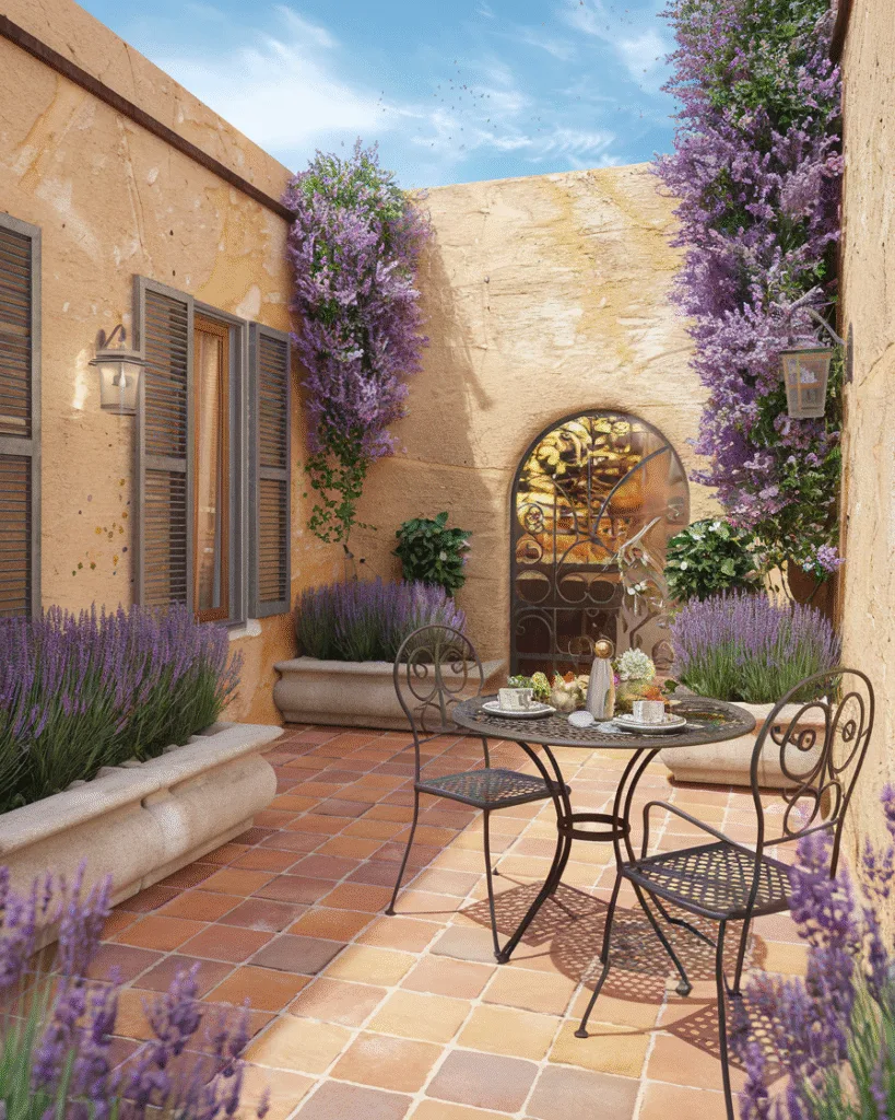 You don’t need to live in Spain or Greece to get this look. I tried it out with terracotta tiles, citrus trees in pots, and rustic metal furniture—it was magic.