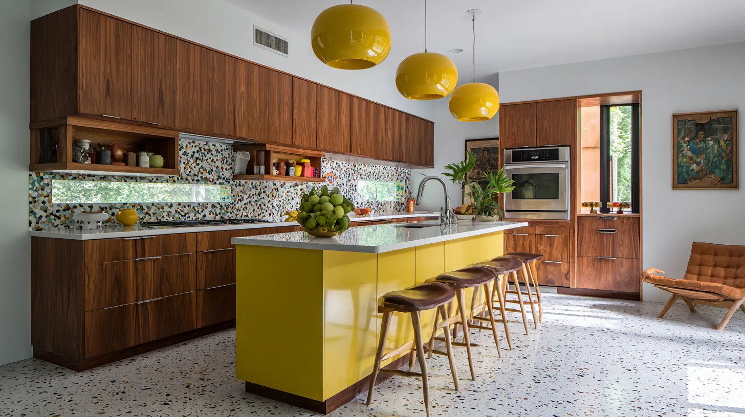 Ready for a bold choice? This one’s packed with retro charm but feels modern when done right. Mustard and walnut together just scream personality.