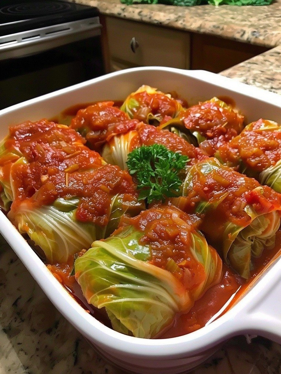 This dish is inspired by traditional Eastern European stuffed cabbage recipes, but the vegan version is just as hearty and satisfying. The cabbage becomes perfectly tender, the filling absorbs the delicious tomato sauce, and the entire dish becomes a warm, cozy meal perfect for family dinners or meal prep.