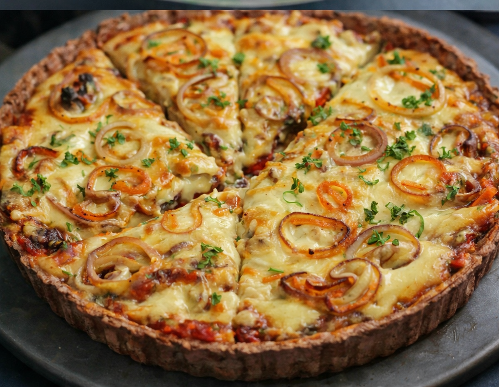 If you’re looking for a show-stopping vegan main dish that feels cozy, elegant, and incredibly satisfying, this Vegan Savory Onion & Cheese Tart is it. 🌱✨