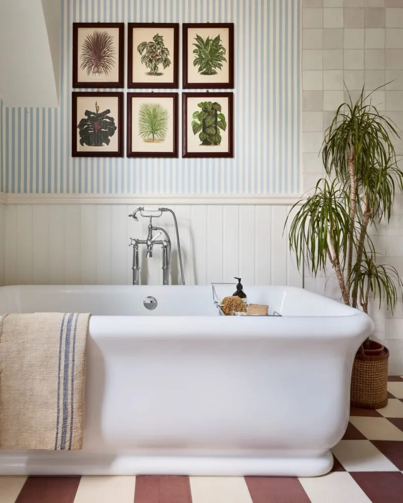The framed plant prints above the tub are such a simple way to add personality. It’s like bringing a little garden indoors — and who wouldn’t love that?
