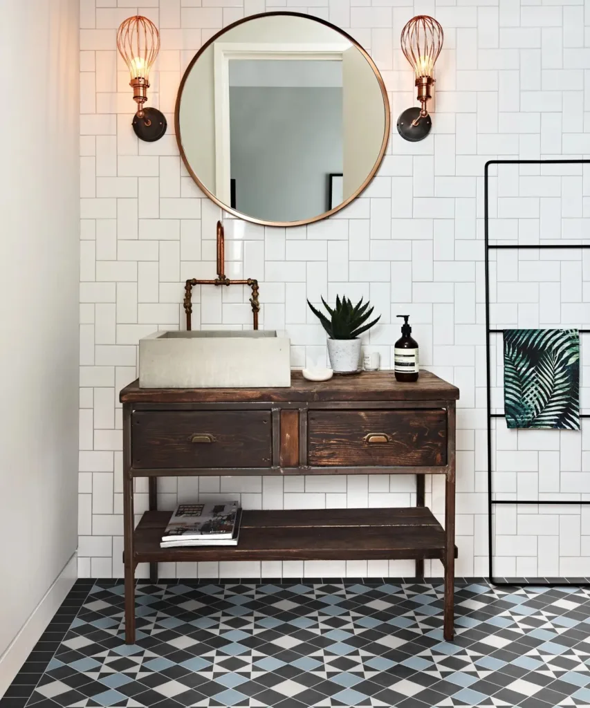 If you want to recreate this, start minimal: a clean sink, metallic details, and maybe a vintage-inspired mirror. It’s easy, and it works every time!